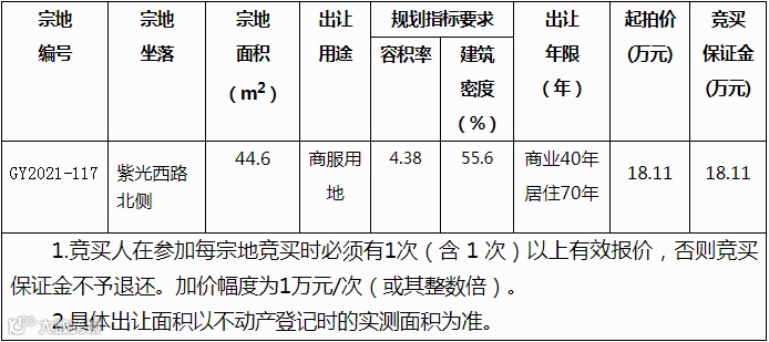 亳州市涡阳县将拍卖出让紫光西路北侧GY2021-117号地块使用权,规划用途为商服用地,申请人最迟可于5月19日提交书面申请。