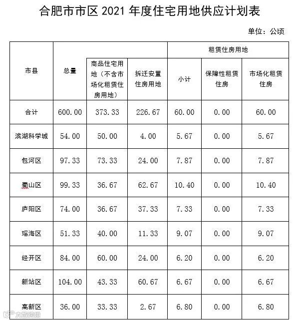 此次《通知》中涉及的范围包括瑶海区、包河区、蜀山区、庐阳区、高新区、经开区、新站高新区和滨湖科学城,计划供地期限为2021年1月1日-2021年12月31日,2021年度市本级国有建设用地供应计划总量为2633公顷。