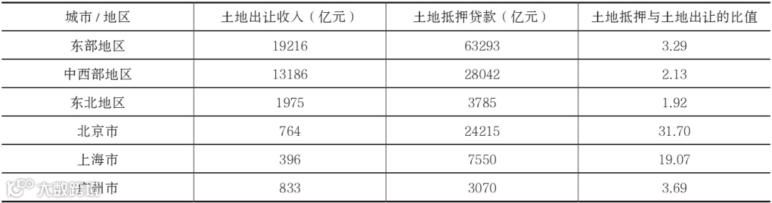 表1 2014年中国各城市/地区土地出让收入与土地抵押贷款对比