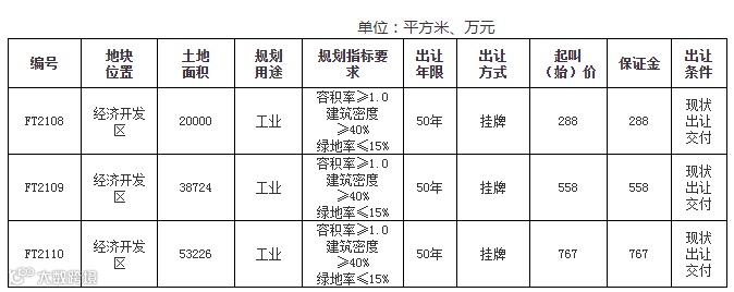 芜湖市决定挂牌出让3宗工业用地使用权,出让年限50年。