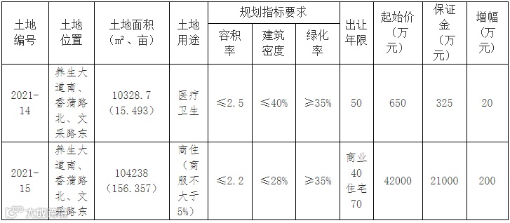 亳州市将出让2宗土地使用权,规划用途分别为医疗卫生和商住(商服不大于5%)。申请人可于4月30日到5月19日提交书面申请。