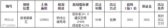 繁昌区新港镇镇区FT2112号地块为物流仓储用地,申请期限为5月6日到5月28日。