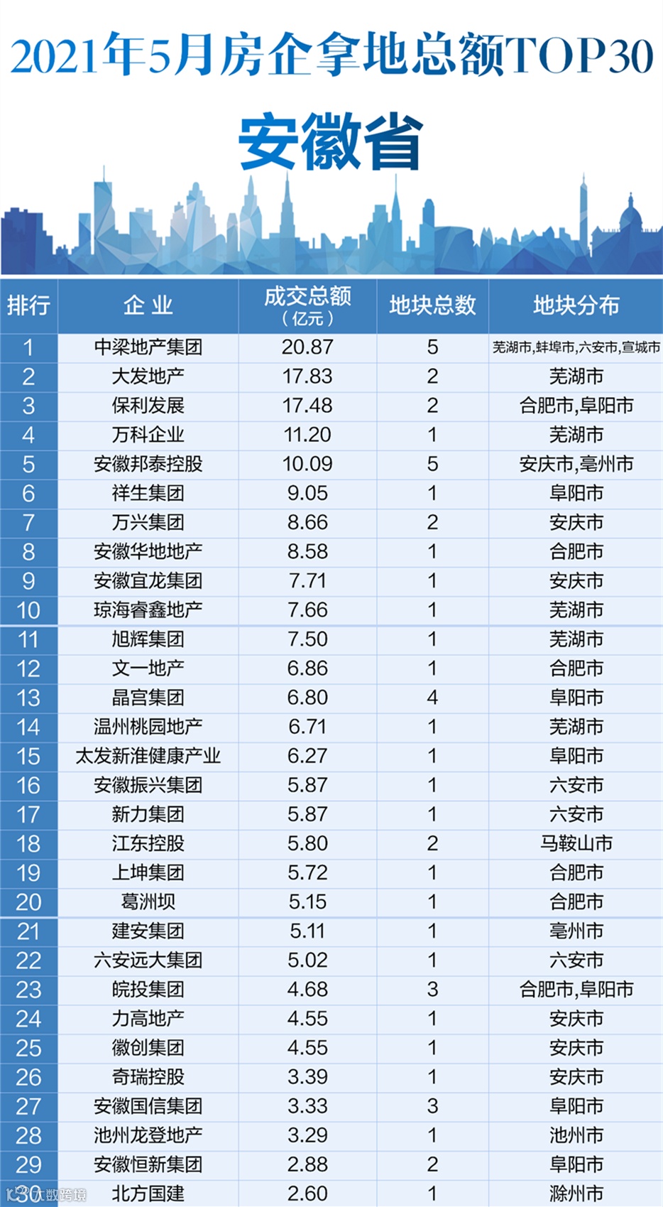 5月安徽省房企拿地金额排行榜