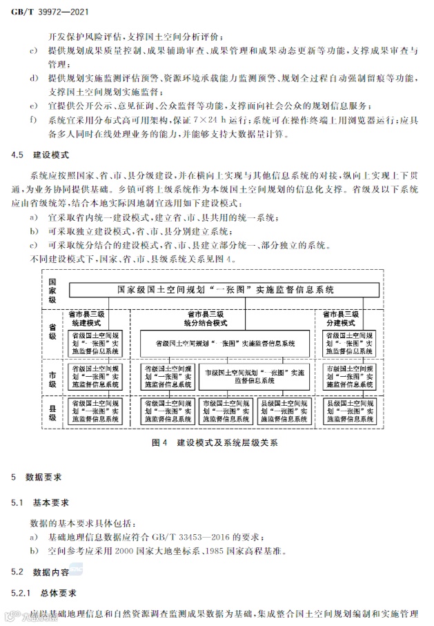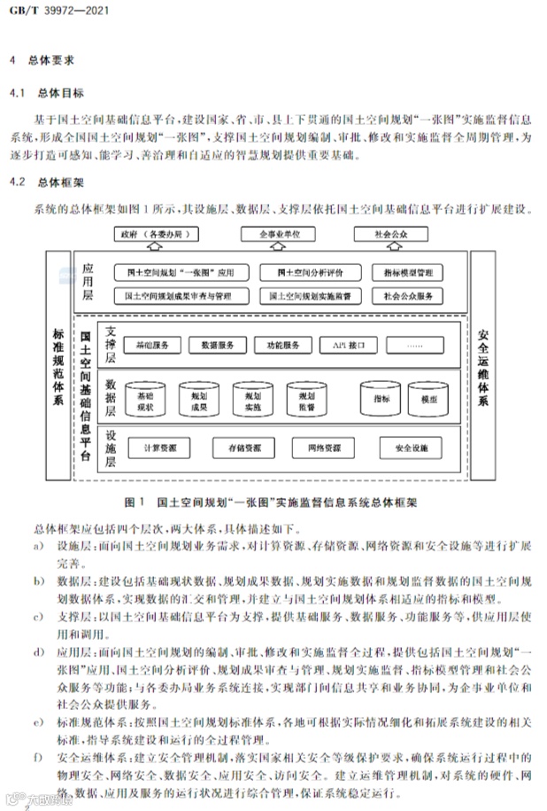 日前,国家标准《国土空间规划“一张图”实施监督信息系统技术规范》全文已正式公布,标准规定了国土空间规划“一张图”实施监督信息系统的总体要求、数据要求、功能要求、环境要求和安全运维要求,适用于国家、省、市、县国土空间规划“一张图”实施监督信息系统的建设与管理工作。