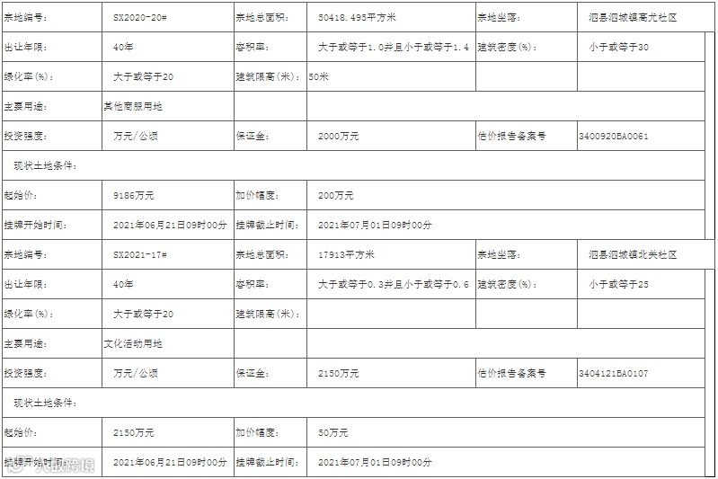 蚌埠市固镇县将拍卖出让3宗土地使用权,2宗涉宅。申请人可于6月1日到6月22日提交书面申请。
