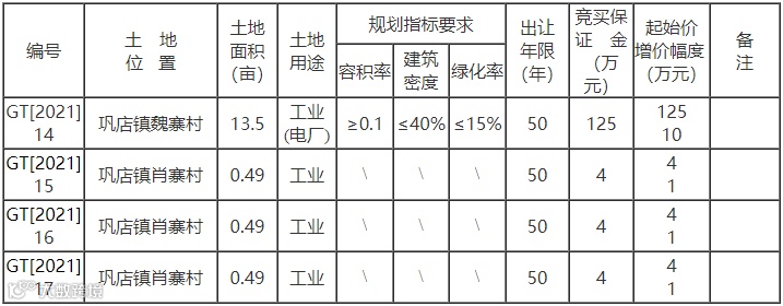 利辛县巩店镇4宗工业用地申请截止日期为7月6日。