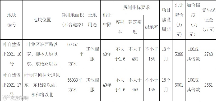 六安市叶集区将出让2宗其他商服用地使用权,7月14日将根据宗地申请报名情况,符合条件的申请人达到3人(含3人)以上的,采取拍卖方式出让;不足3人的,则转为挂牌方式出让,并继续接受报名,报名和缴纳竞买保证金的截止日期延至7月23日。