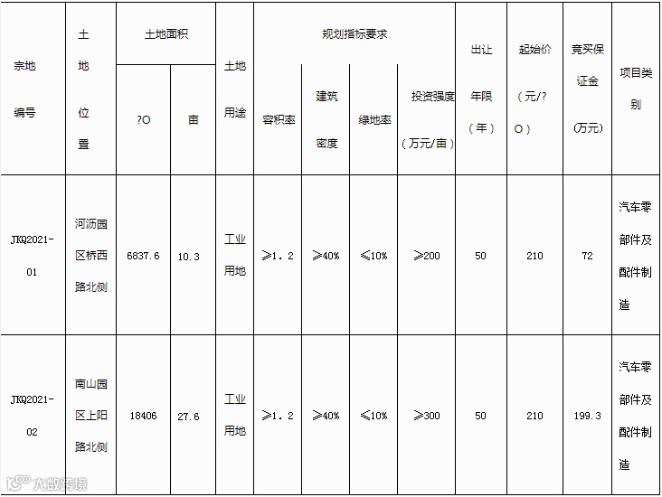 阜阳市太和县将挂牌出让5宗工业用地使用权,递交竞买申请书及交纳竞买保证金截止时间为5月18日。