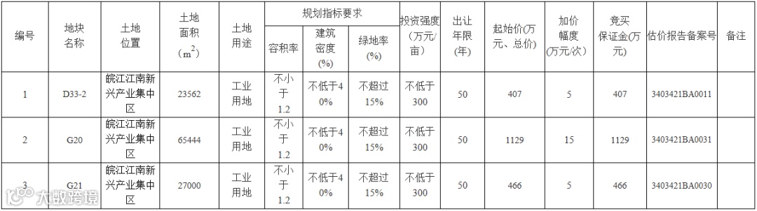 池州市将出让7宗土地使用权。皖江江南新兴产业集中区3宗工业用地申请期限为5月31日到6月15日,另外4宗地块申请期限为5月27日到6月5日。