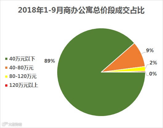 从总价段段来看,40万元以下的产品成交占比高达89%,是成交主力价段;其次是40-80万元之间的产品,占比9%。