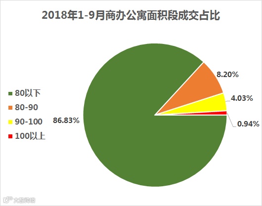 从面积段来看,80㎡以下的产品成为热销户型,占比高达86.83%。其次是80-90㎡之间的产品,占比8.20%。