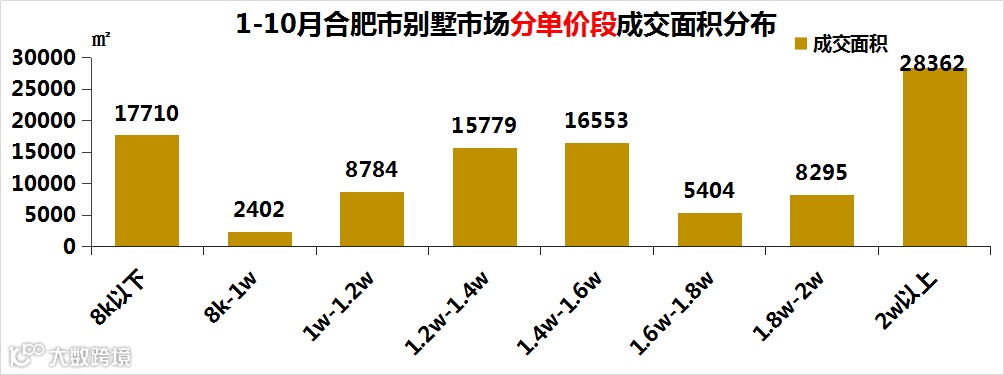 限购后期,合肥别墅市场成交量明显大幅下降,1-10月合肥共成交别墅310套,成交面积为10.33万㎡,面积同比下跌81.96%;其中在10月份别墅成交量也有所下降,仅成交9套/0.27万㎡,面积环比跌74.45%。