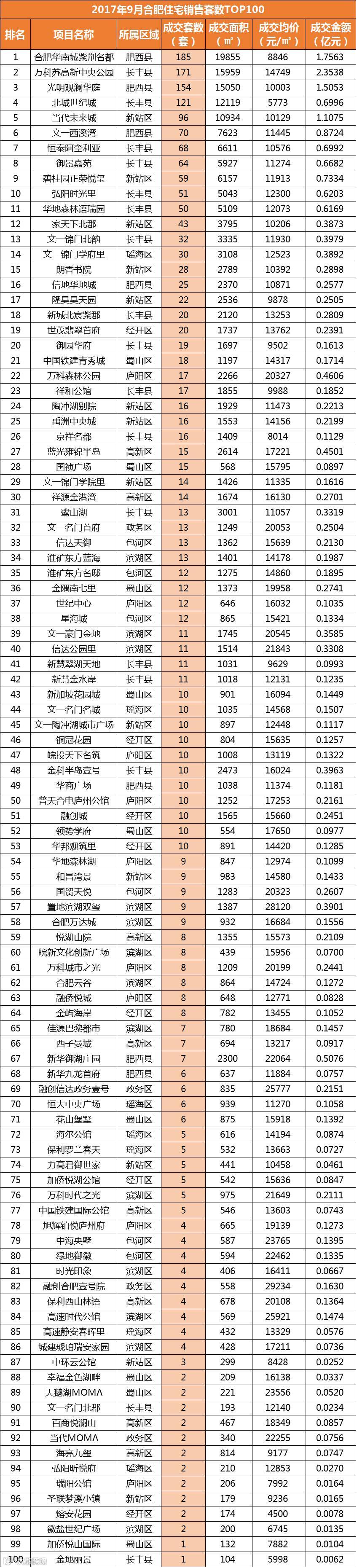 导语:本次主要关注9月合肥商品住宅成交排行榜,通过一系列排行榜(销售套数、销售面积、销售金额)来分析今年9月合肥住宅市场发展的趋势。规划