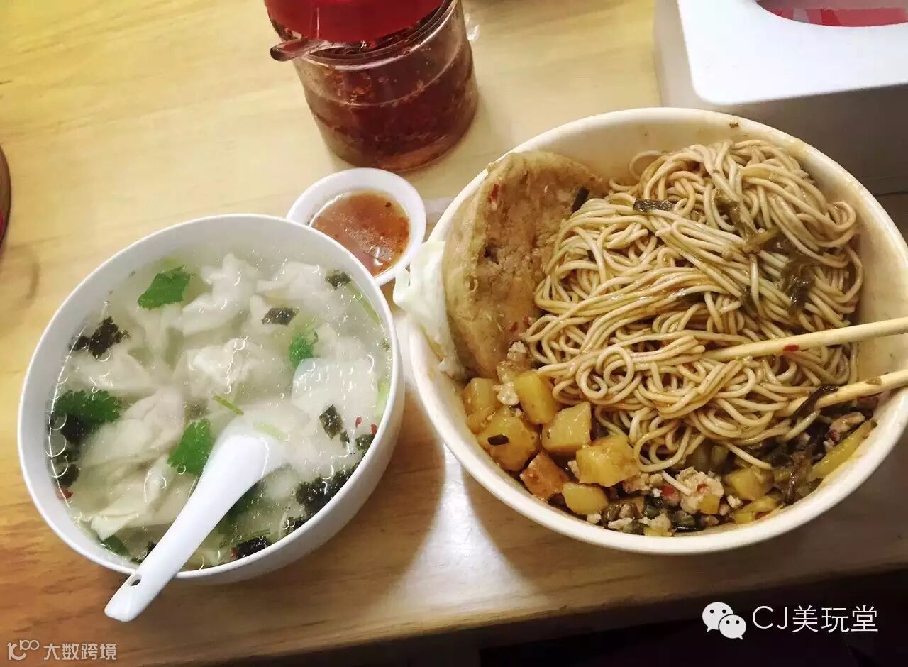 面筋斗,味独特。 在所有海派面点里,最简单的就属阳春面和葱油拌面。或许正是由于简单的原因,真正能把这两个面做得好的人家并不多。开洋葱油拌面,以熬香的葱油加上烧透的开洋,和面条一起拌着来吃。地道的开洋葱油拌面,面条有韧劲又滑爽,开洋鲜美,葱油则是喷喷香。一碗好味道的拌面在手,桌子上即使有再多的小菜,保证你看也不会看一眼,薇薇的吃法 简单的拌面中加入上海特色的八宝辣酱与雪菜肉丝 一碗20元以内的面完全胜过满汉全席~