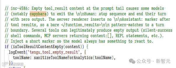 开发者发现,当Prompt的Shape在工具调用(Tool Use)返回结果后,如果长得太像一个「轮次边界(Turn Boundary)」,Capybara会产生误判,导致模型过早停止。