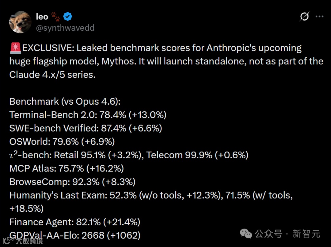 就在刚刚,Anthropic疑似下一代旗舰重磅旗舰模型Mythos的基准测试跑分,又又又泄露了。