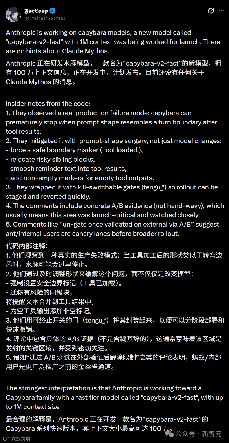 另外,昨天泄露的Claude Code源代码中,曝光了不少Anthropic「卡皮巴拉」模型的细节。