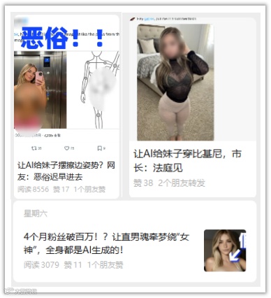 满屏都是“AI换脸”搞出的擦边内容。让AI给妹子摆擦边姿势?网友:恶俗迟早进去4个月粉丝破百万!?让直男魂牵梦绕“女神”,全身都是AI生成的!让AI给妹子穿比基尼,市长:法庭见(虽然我自己也蹭了不少次)but!我是出于批判的角度。(我信了)