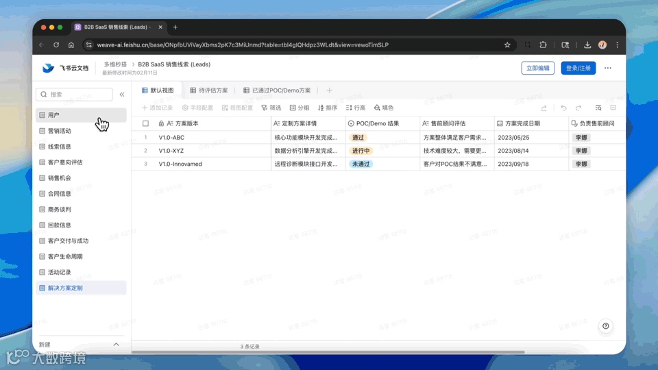 3分钟后,屏幕上出现完整的管理系统:客户分类表、项目信息表、负责人字段、跟进节点、状态流转、回款记录。
