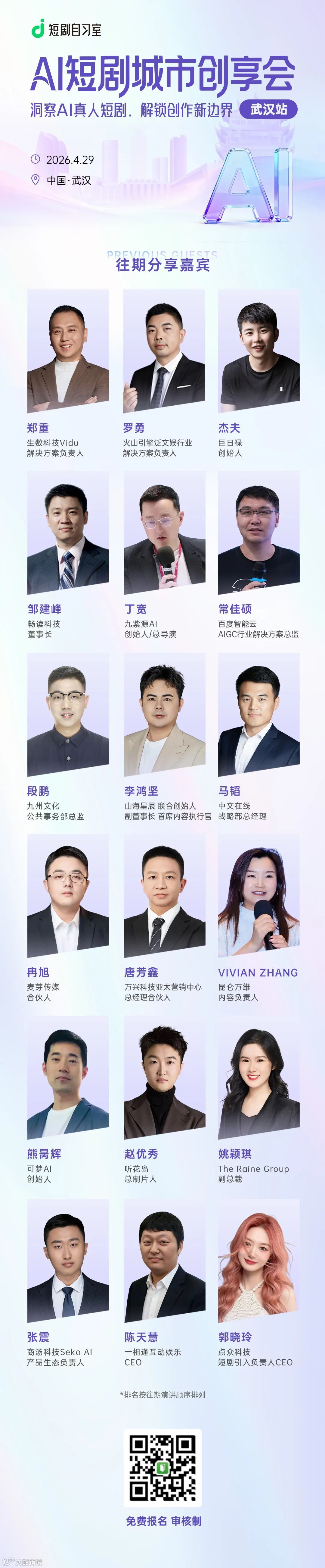 PS:欢迎扫描下方海报二维码,报名短剧自习室“AI短剧城市创享会-武汉站”活动
