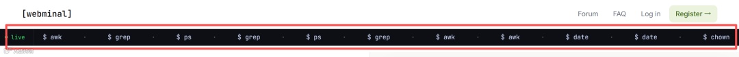在整个项目中,唯一称得上“现代”的技术,是 eBPF。Webminal 使用它来实时追踪系统命令执行,并在首页展示一个滚动的“命令流”:ls、gcc、vim……这些不是模拟数据,全部来自当前真实用户的输入,且已做匿名化处理,只展示命令本身,无参数、无路径、无密码。