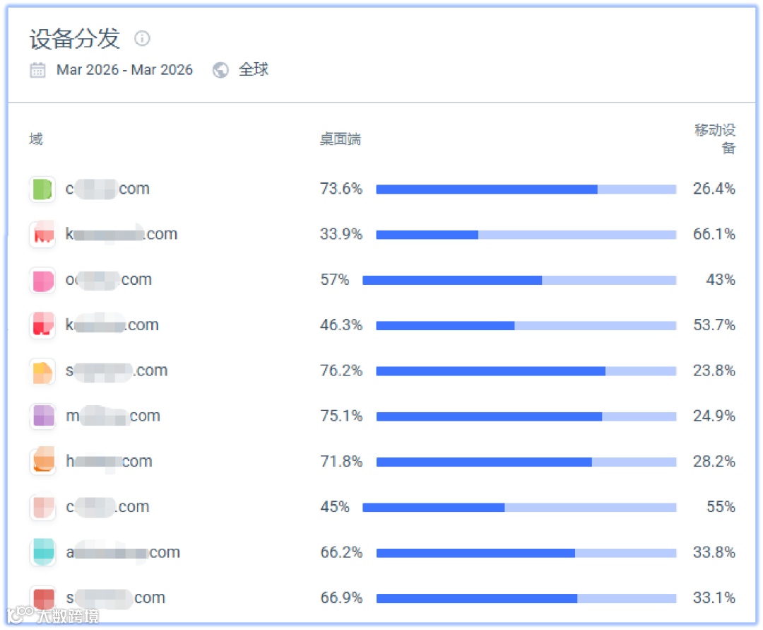 2.移动设备端访问占比超50%的为3家。