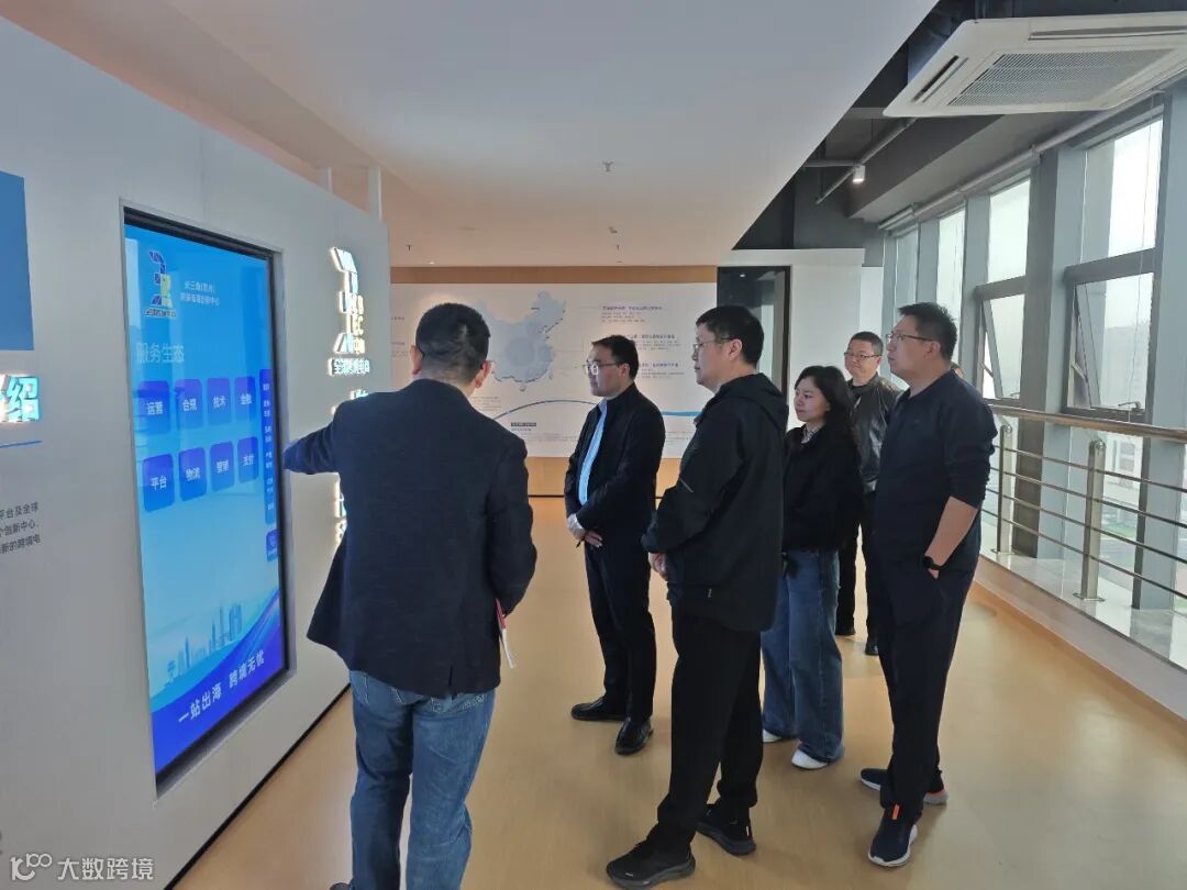 东海县考察团一行首先参观了长三角(常州)跨境电商创新中心的展厅,观看了企业宣传片和文化墙,详细了解了中心的发展历程、服务生态以及跨境电商行业的发展趋势。丰富的展示内容和清晰的战略布局给来访领导留下了深刻印象。