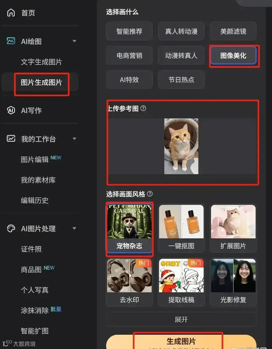 搜狐简单AI【图生图-图像美化-宠物杂志】功能可实现零应激拍摄: