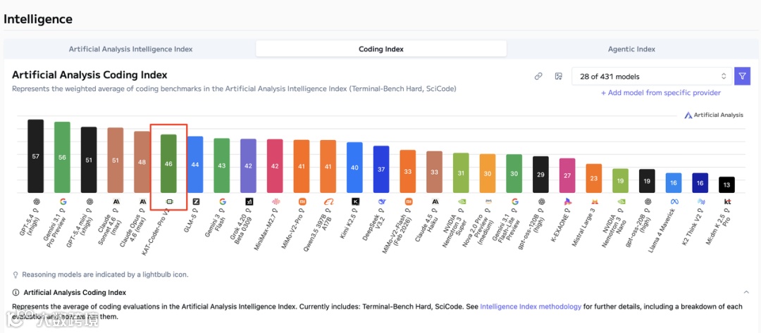 在Artificial Analysis平台评测中,该模型位列Coding Index榜单第四,仅次于GPT-5.4、Gemini 3.1 Pro和Claude Opus 4.6,成为non-reasoning分类中排名最高的国产模型。数据显示,快手团队在大型语言模型领域已实现快速突破。