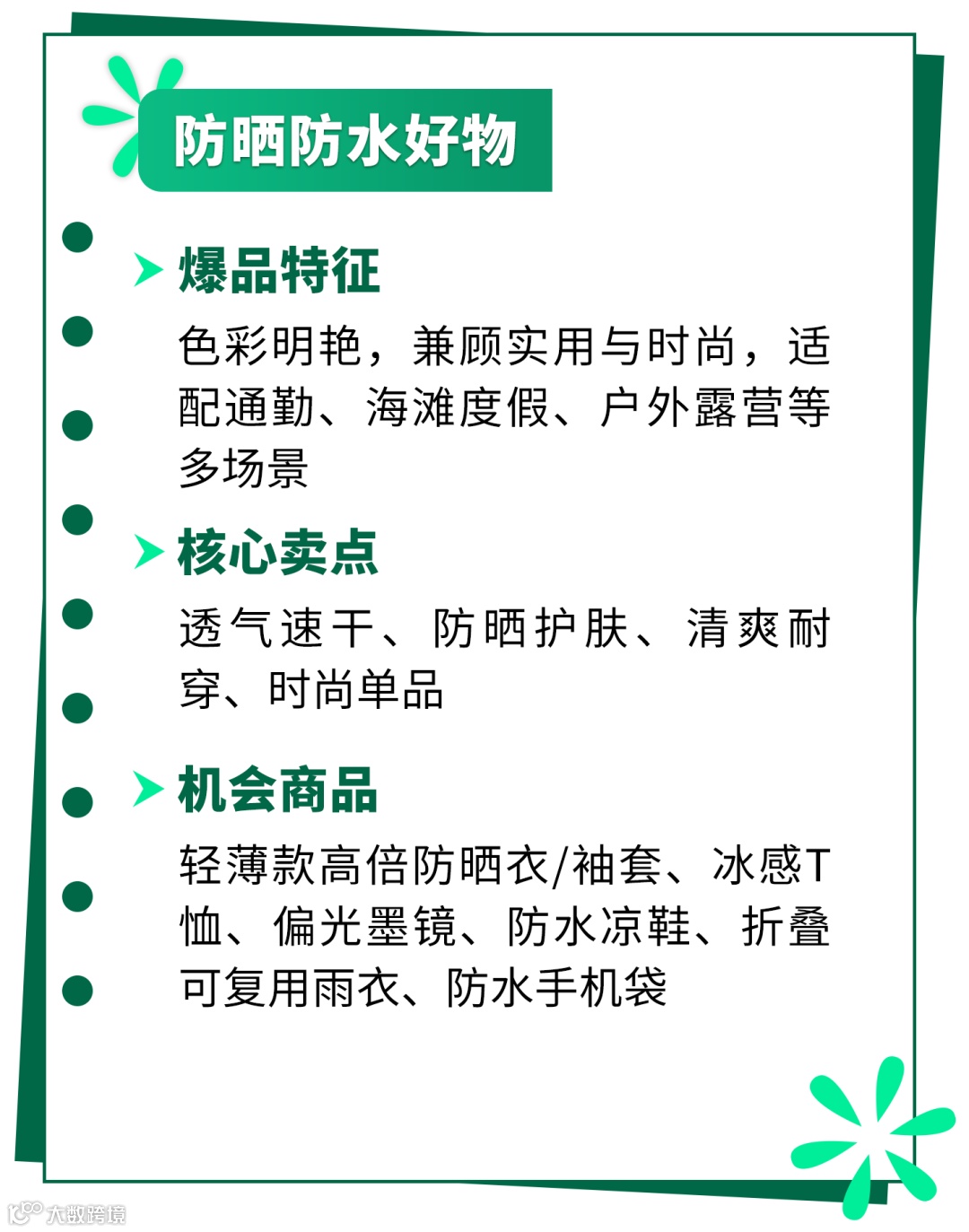 墨西哥夏季高温强日照且多雨,海滩度假、公园野餐等户外活动频发,形成“应季叠加户外社交”刚需矩阵。选品需侧重场景适配性:避暑需求催生居家降温用品热销;户外场景带动防晒、防水装备采购;社交活动提升便携实用产品需求。商家应通过春末更新夏季好物实测、场景穿搭短视频,直播设置专业讲解与达人试用环节,选品聚焦高性价比、场景适配、家庭及年轻群体需求。