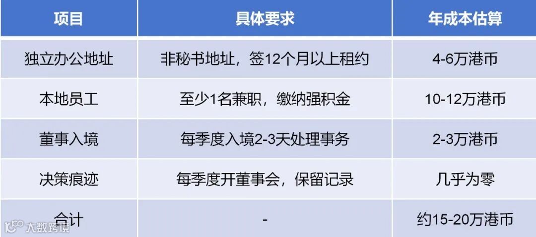 该模式要求将香港公司从纯“收款壳”升级为具备实体运营特征的公司,核心包含实体办公、雇佣员工等要求。支持者援引“实质重于形式”原则,认为空壳公司易被认定为“导管公司”,面临穿透征税风险。