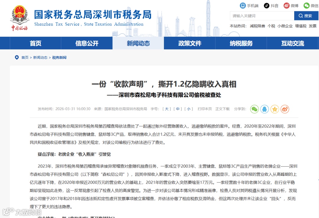深圳税务重拳出击:隐匿1.2亿收入被罚近3000万!零申报合规指南