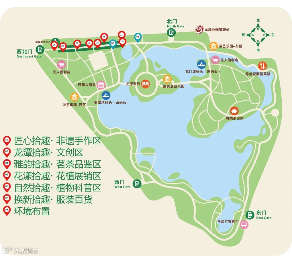 摊位设置:覆盖匠心拾趣·非遗手作区、龙潭拾趣·文创区、雅韵拾趣·茗茶品鉴区、花漾拾趣·花植展销区、自然拾趣·植物科普区及换新拾趣·服装百货区等80个特色摊位。