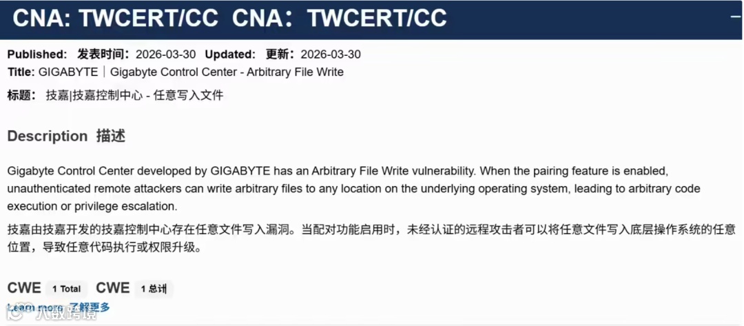 技嘉确认,攻击者可借此篡改系统文件、提升操作权限,甚至执行恶意代码或触发拒绝服务攻击导致设备瘫痪。
