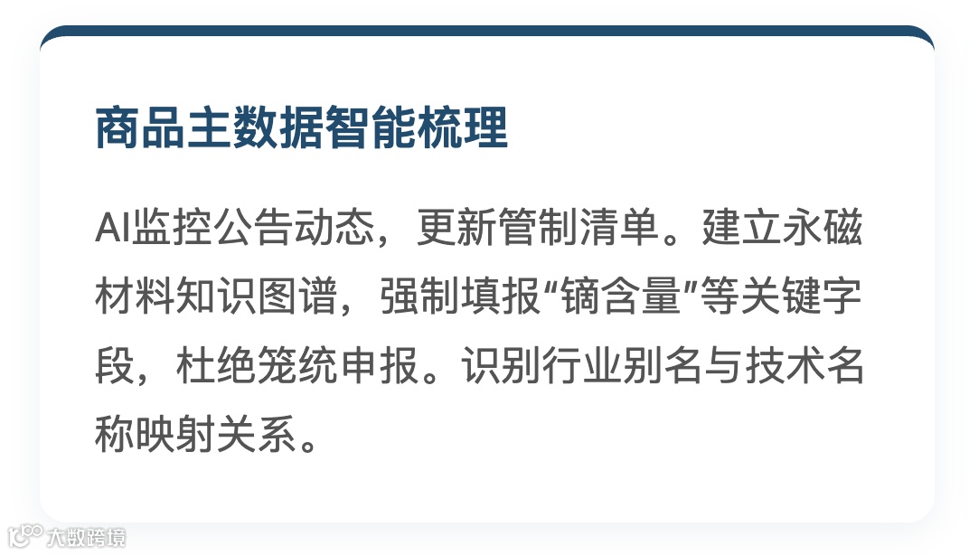 AI技术通过实时政策监控、成分-编码智能匹配及供应链数据关联,推动合规从“事后应对”转向“事前预防”。对稀土永磁等成分敏感商品,数据驱动的智能合规体系不可或缺。