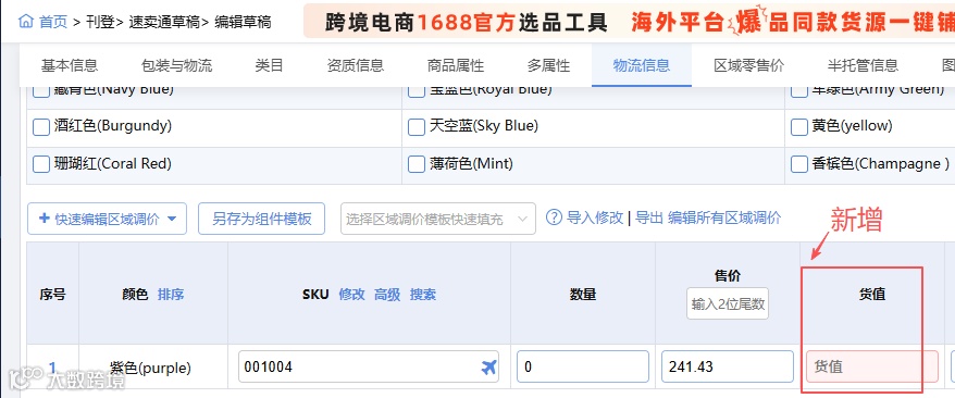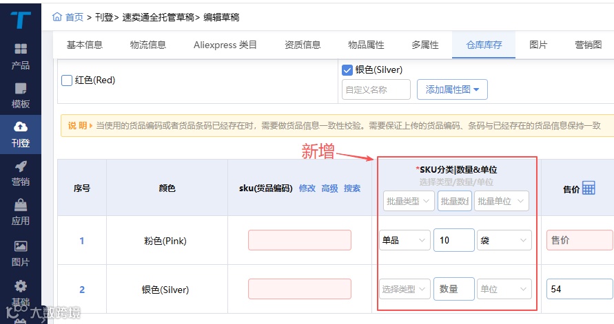 速卖通半托及全托服务在部分类目中支持SKU组套信息管理。