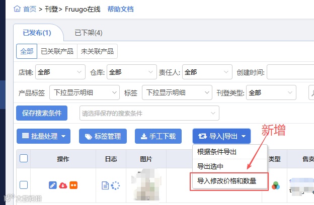 Fruugo平台在线编辑支持通过导入功能批量修改商品价格和库存数量。