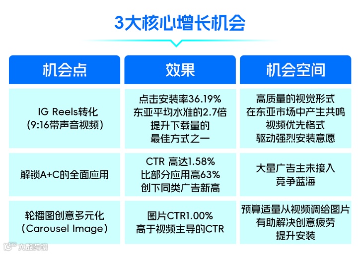 2025年投放核心是争夺用户注意力。基于Meta Q1数据及东亚玩家习惯,建议抓住以下机会:展现形式匹配度、优化精准度与创意多元化直接决定ROAS表现。