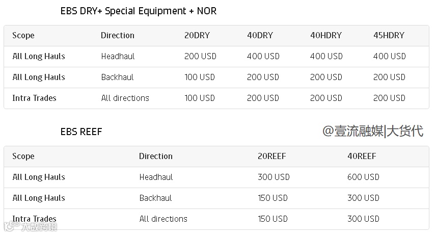 以星更新欧线燃油附加费