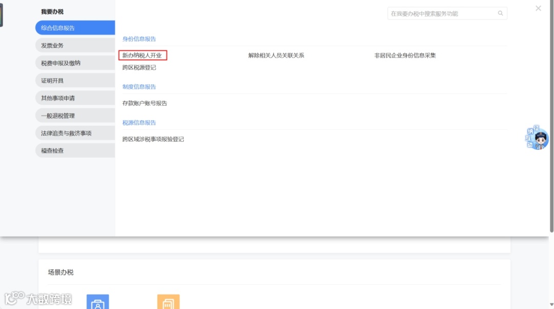 - 【我要办税】—【综合信息报告】—【身份信息报告】—【新办纳税人开业】