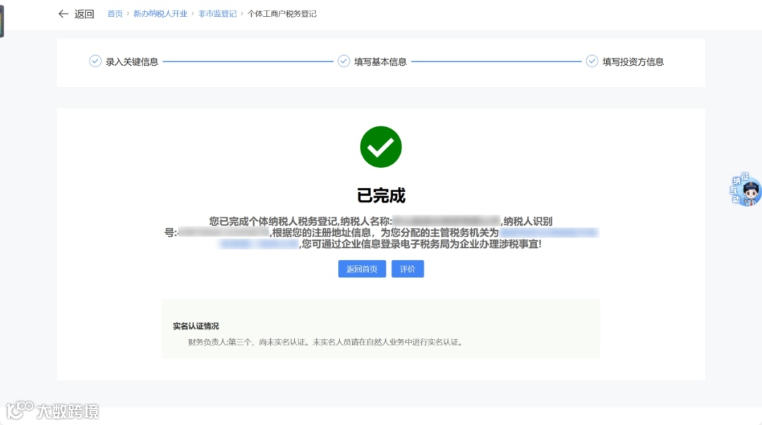 ④ 系统显示个体工商户税务登记成功,并自动分配主管税务机关。