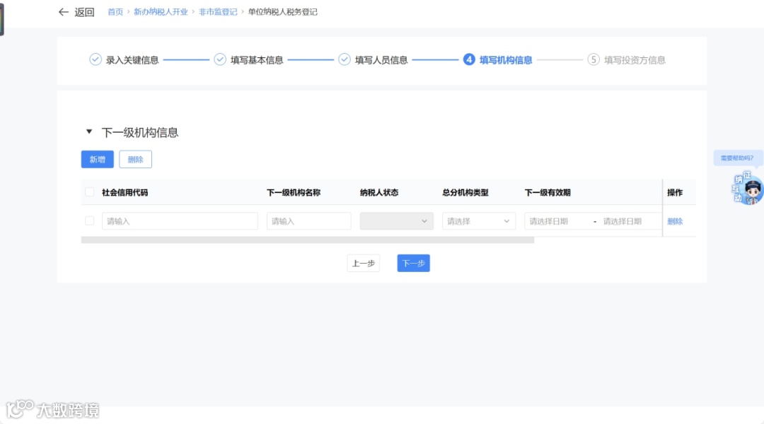 ④ 根据“总分机构类型”填写机构信息(同单位纳税人流程)。