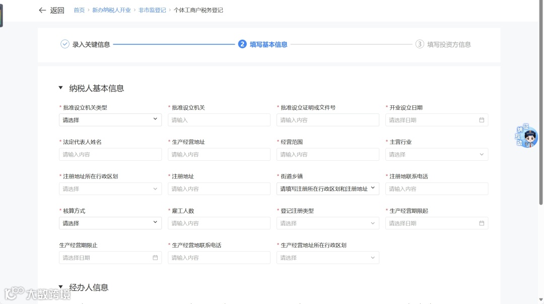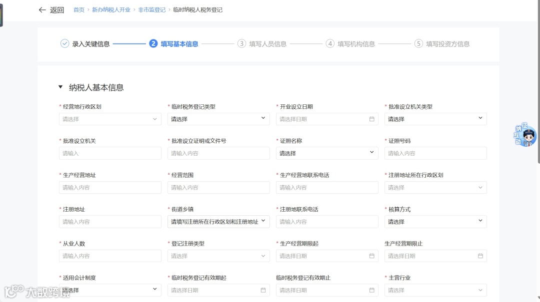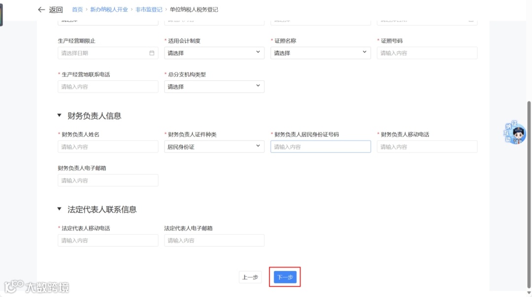 ② 进入基础信息填写界面,确认无误后点击【下一步】。