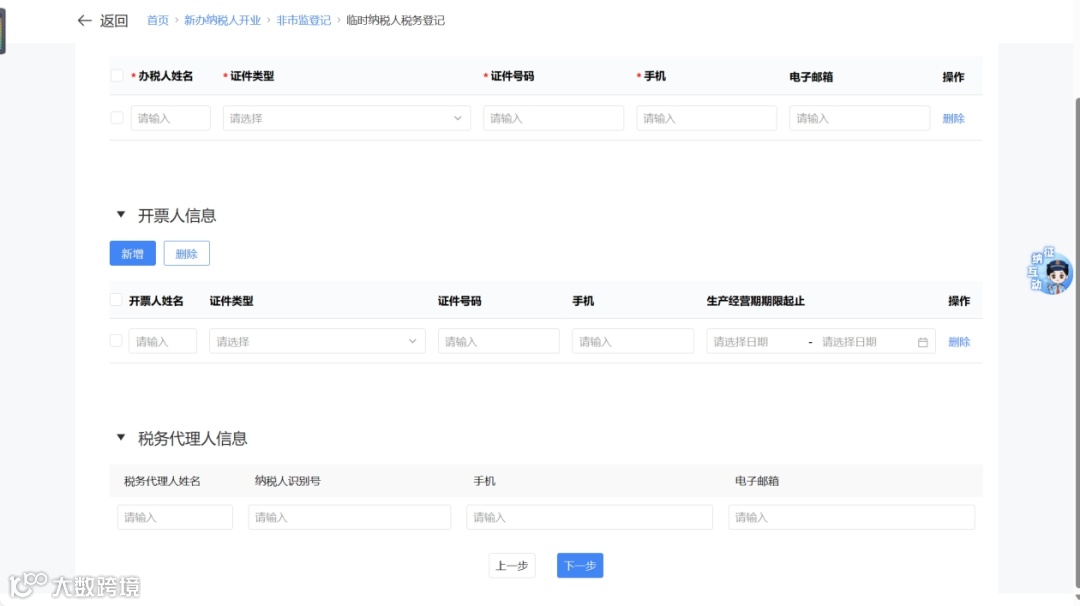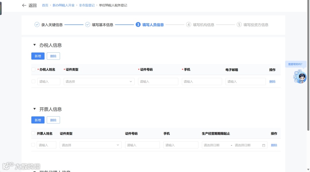 ③ 填写人员信息,确认后点击【下一步】。