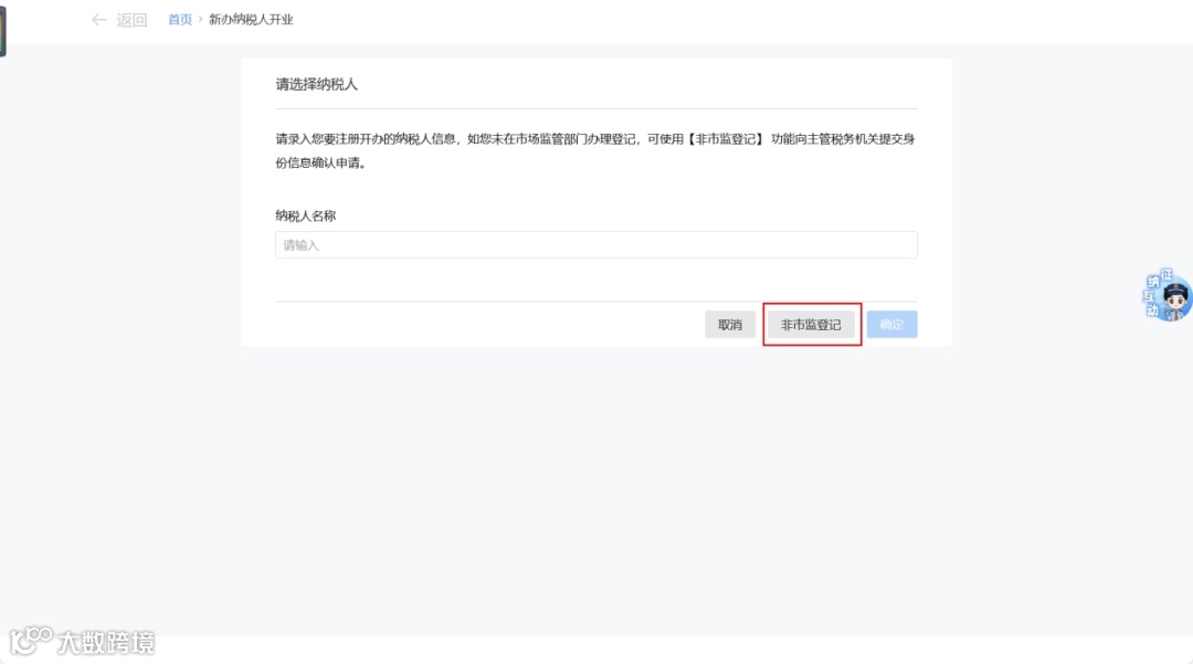 1. 进入【新办纳税人开业】—【新办开业】—【非市监登记】。