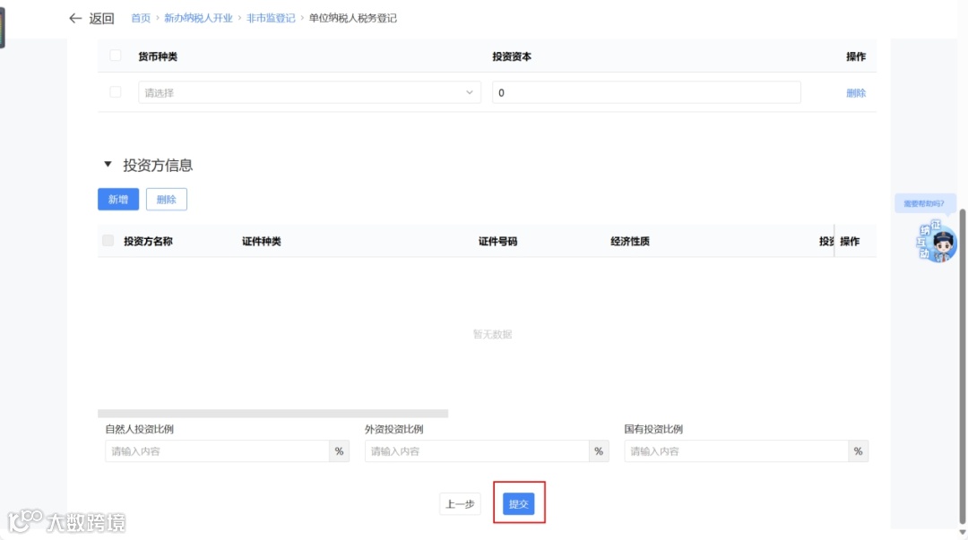 ③ 填写投资方信息,确认后点击【提交】。