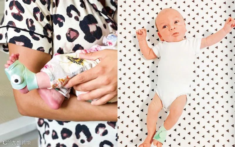 下图的妈妈第一个孩子就因为先天心脏病夭折了,于是怀第二胎时,一早就决定用这双智能袜子监测孩子睡眠。