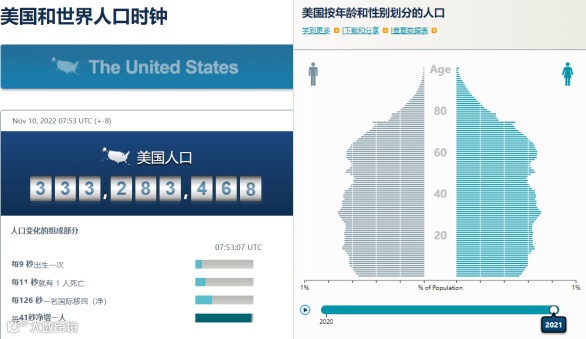 美国人口普查局的人口时钟显示,截至11月10日,美国人口达3.33亿人,近80%的人口使用英语为第一语言,有12.4%左右的人口以西班牙语为第一语言,主要集中在靠近拉丁美洲的部分州,如加利福尼亚州、德克萨斯州和佛罗里达州。