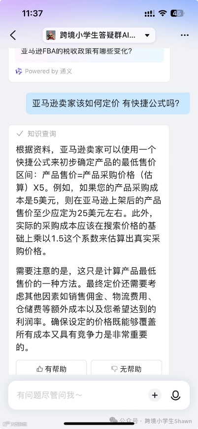 群内配置专属AI助手,在非答疑日或答疑导师繁忙期间,协助解答亚马逊平台相关问题。知识库涵盖知识星球内容、历史周三答疑记录及个人学习笔记。