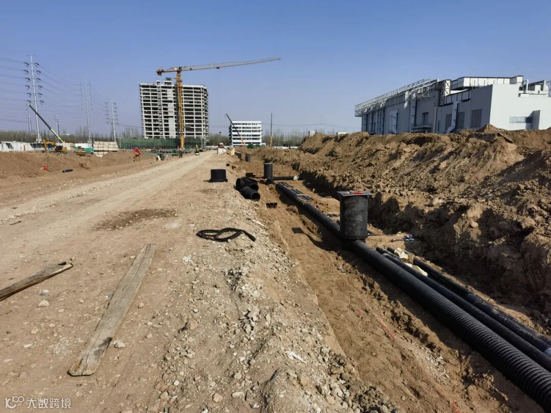 水管网开挖完成90%,管网安装完成30%,进度符合预期,预计4月20日完成沥青铺设,为园区通行与物流运输提供坚实保障。